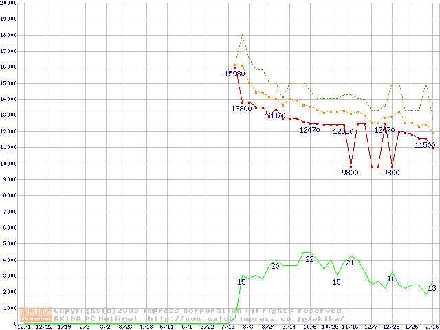 PC1066 DRDRAM RIMM4200(32bit)の最安値推移