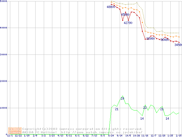 Socket 478 (micro-PGA,FSB 533MHz,L2 512KB,Northwood)の最安値推移