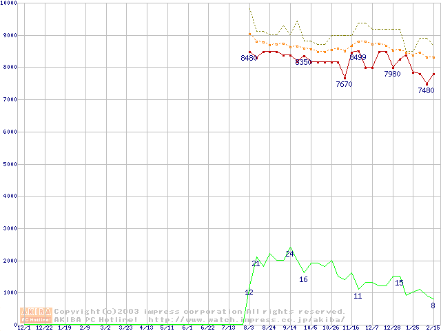 Fireball 3 (5400rpm,UltraATA/133,2MB,BB)の最安値推移