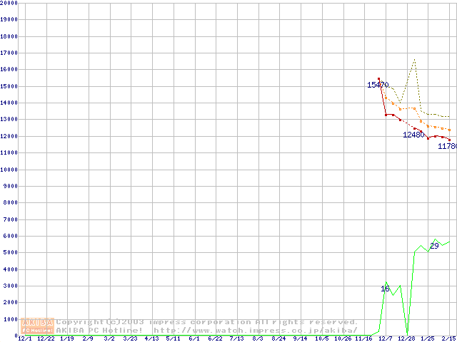HDD主要製品(最安値1万円~1万5千円未満)の最安値推移