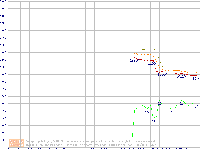 Socket 478 (micro-PGA,FSB 400MHz,L2 128KB,Northwood)の最安値推移