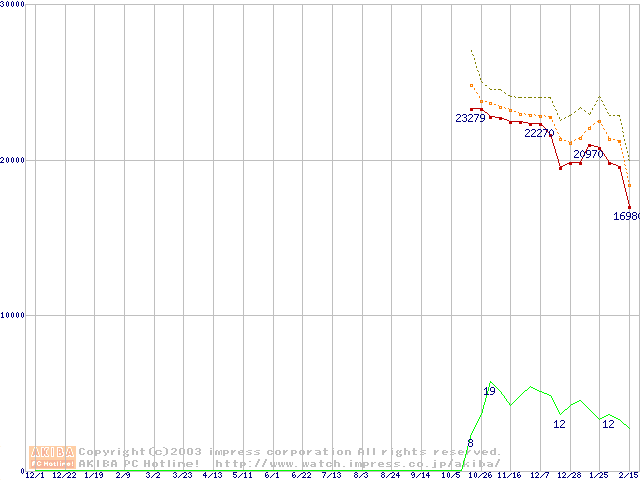 Socket A (OPGA,FSB 266MHz,L2 256KB,Thoroughbred)の最安値推移