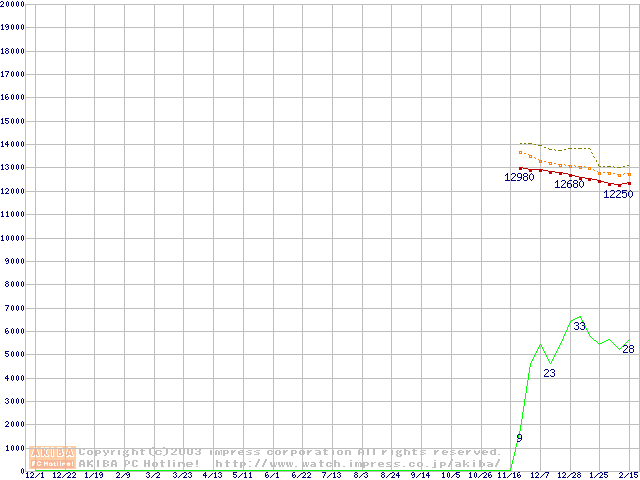 Socket 478 (micro-PGA,FSB 400MHz,L2 128KB,Northwood)の最安値推移