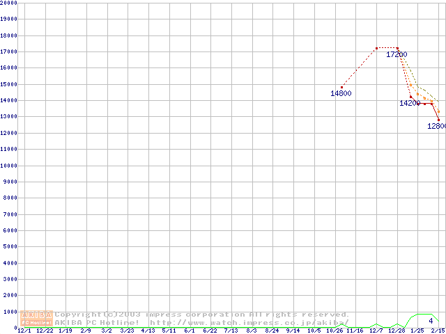 PC3500(DDR433) DDR SDRAM DIMMの最安値推移