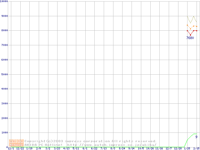 | Athlon XP 1800+ (1.53GHz) バルク(Thoroughbred)の価格推移 |
