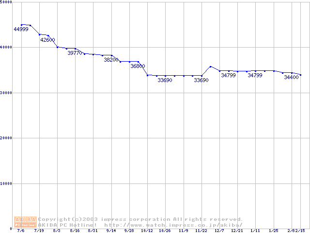 | [↑前グラフ]: | Jupitor (7200rpm,2MB,FDB,UltraATA/100)の最安値推移 |
