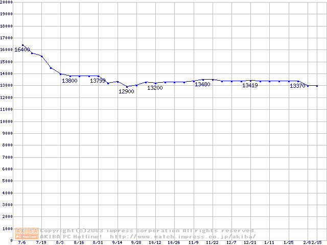 | [↑前グラフ]: | Socket 370 (FC-PGA2,FSB 133MHz,L2 512KB,Tualatin)の最安値推移 |