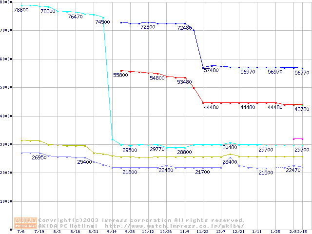 | [↑前グラフ]: | Socket 604 (micro-PGA,FSB 533MHz,L2 512KB,Prestonia)の最安値推移 |