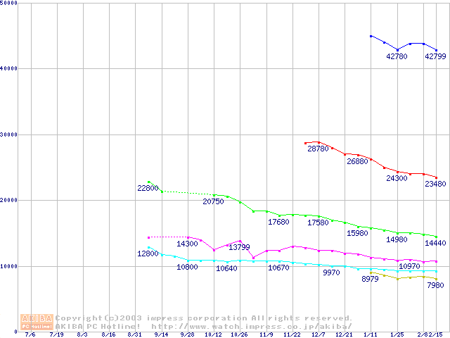 | [↑前グラフ]: | DiamondMax Plus 9 (7200rpm,8MB,UltraATA/133,FDB)の最安値推移 |