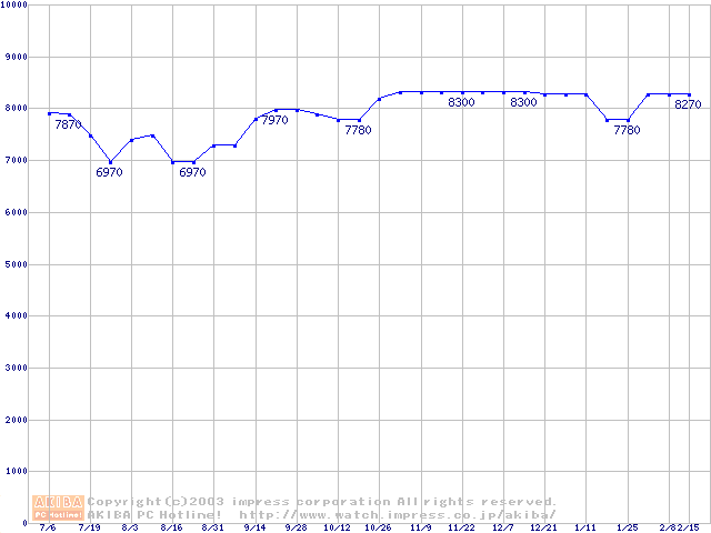 | [↑前グラフ]: | WD Caviar (5400rpm,UltraATA/100,2MB)の最安値推移 |