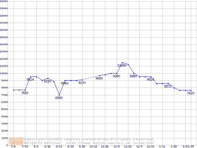 | [↓次グラフ]: | PC2700(DDR333) DDR SDRAM DIMMの最安値推移 |