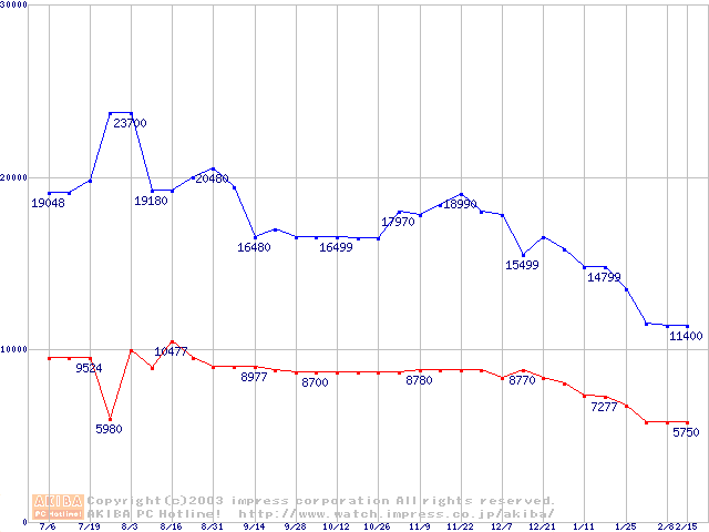 | [↓次グラフ]: | PC3500(DDR433) DDR SDRAM DIMMの最安値推移 |