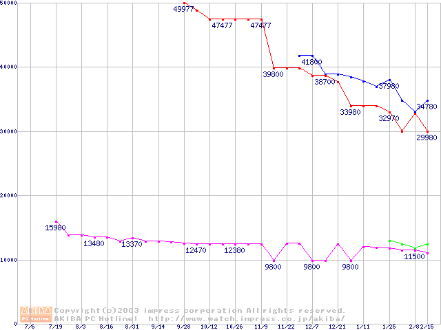 | [↓次グラフ]: | Socket 478 (micro-PGA,FSB 533MHz,L2 512KB,Hyper-Threading,Northwood)の最安値推移 |
