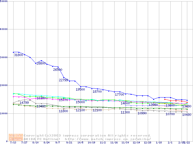 | [↓次グラフ]: | 2.5インチHDD主要製品(最安値1万5千円~2万円未満)の最安値推移 |
