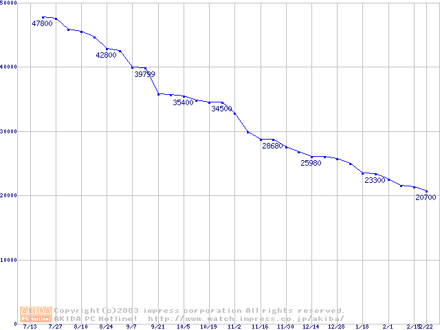 | [↓次グラフ]: | 2.5インチHDD主要製品(最安値3万円以上)の最安値推移 |