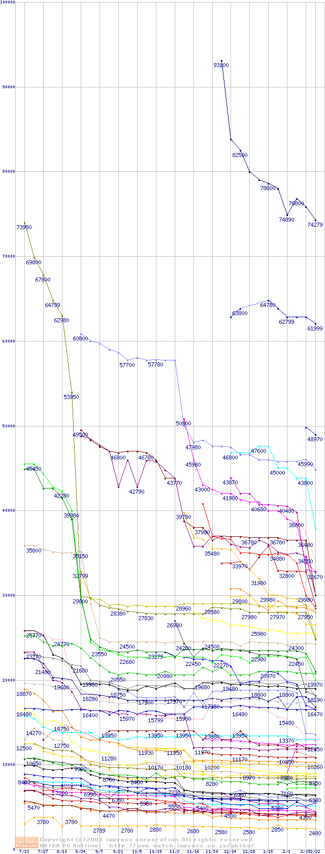 CPU主要製品の最安値推移