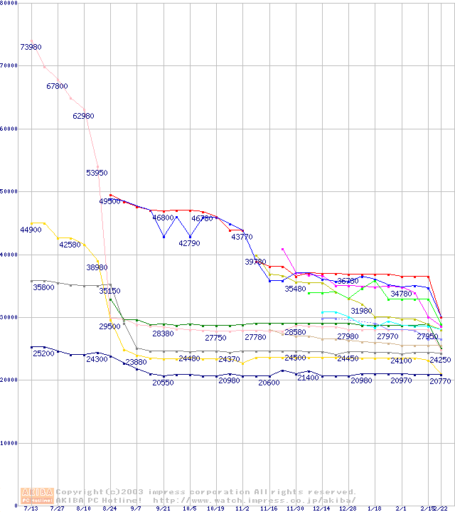CPU主要製品(最安値2万円~3万円未満)の最安値推移