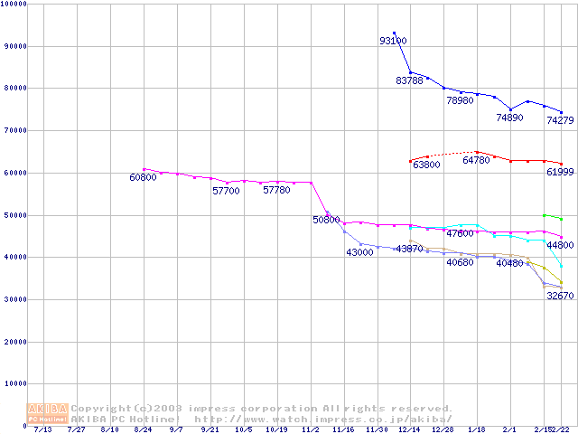 CPU主要製品(最安値2万円~3万円未満)の最安値推移