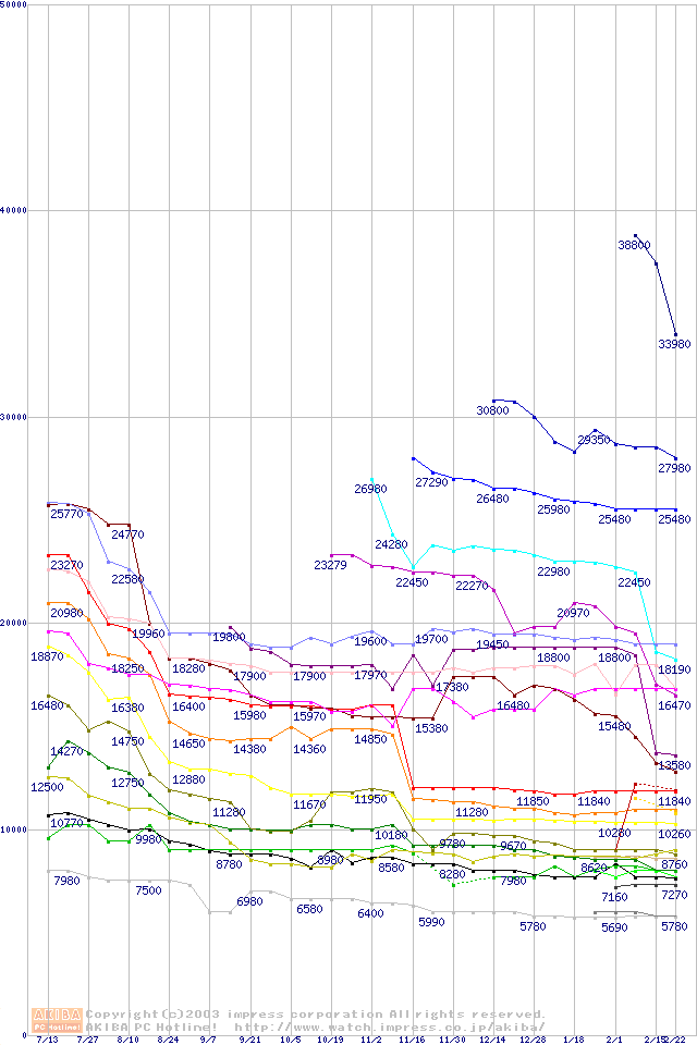 Socket A・FSB 200MHzの最安値推移