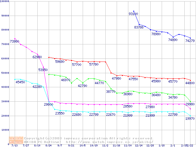 Socket A・FSB 200MHzの最安値推移