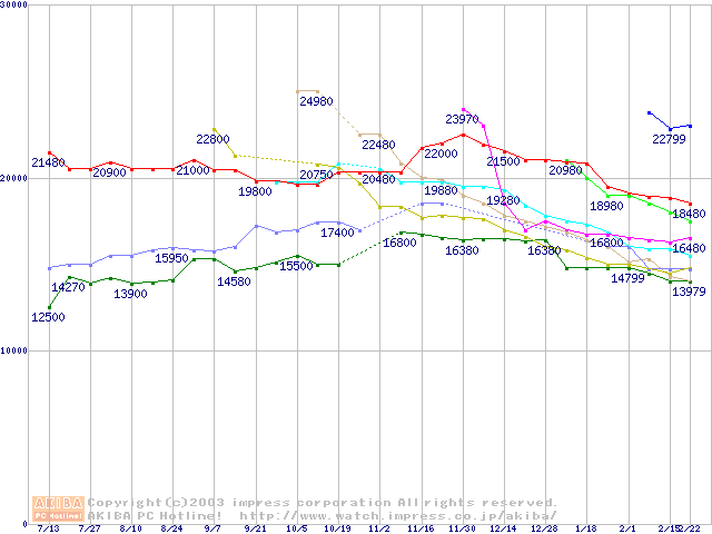 HDD 160~200GB未満(7200rpmクラス)の最安値推移