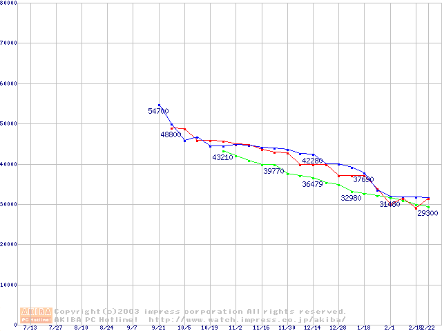 メモリ主要製品の最安値推移