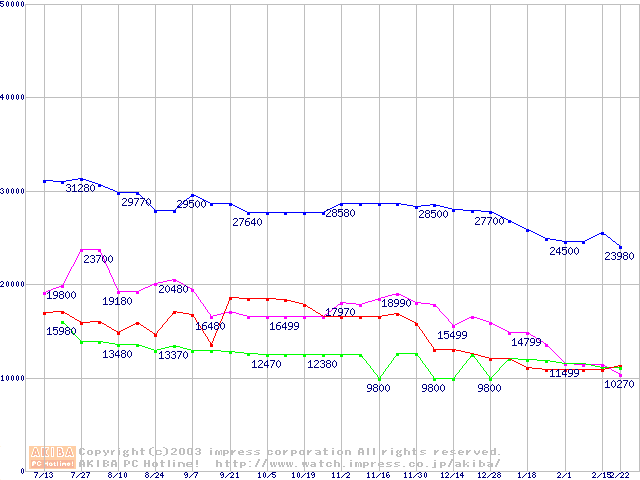 メモリ主要製品の最安値推移