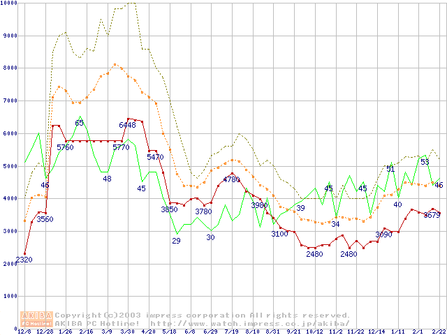 PC133 SDRAM DIMM CasLatency=3の最安値推移