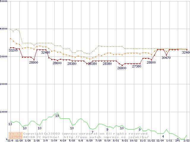 PC800-45 RIMM 512MBの価格推移