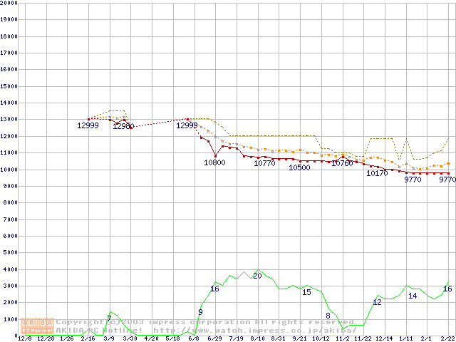MKシリーズ (9.5mm,4200rpm,2MB,FDB,20GB/Platter)の最安値推移