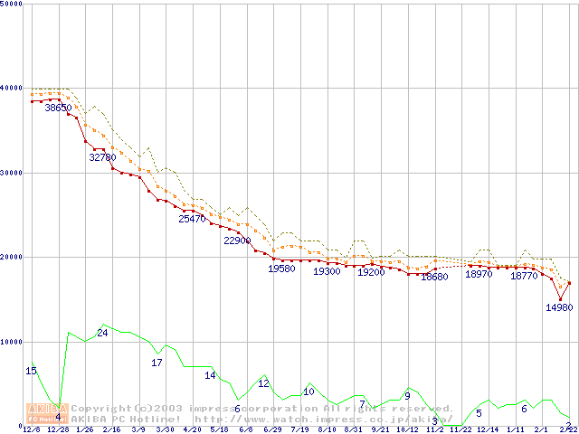 WD Caviar (7200rpm,UltraATA/100,2MB)の最安値推移