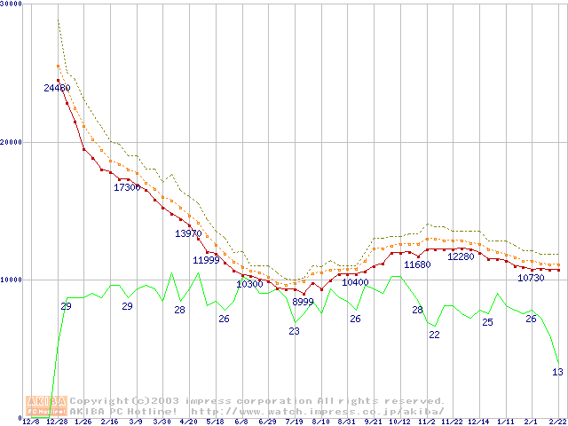 Deskstar 120GXP (7200rpm,2MB,UltraATA/100,BB)の最安値推移