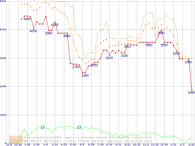 PC2100(DDR266) DDR SDRAM DIMM(CL 2.0)の最安値推移