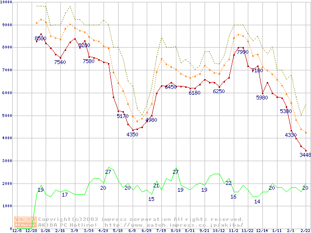 メモリ主要製品の最安値推移