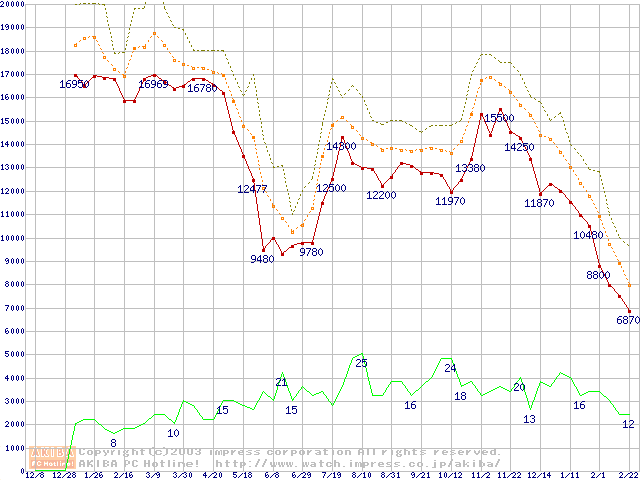 PC2100(DDR266) DDR SDRAM DIMM(CL 2.0)の最安値推移