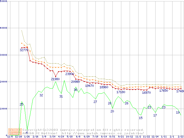 Pentium 4 1.80A GHz リテールパッケージの価格推移