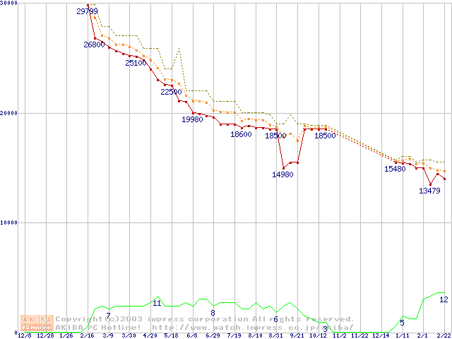WD Caviar (5400rpm,UltraATA/100,2MB)の最安値推移