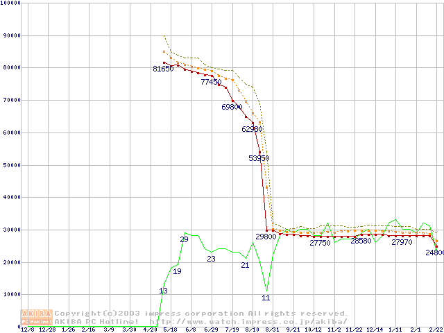 Pentium 4 2.53GHz リテールパッケージの価格推移