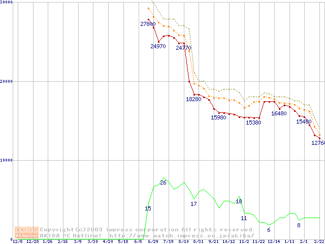 Socket A (OPGA,FSB 266MHz,L2 256KB,Thoroughbred)の最安値推移