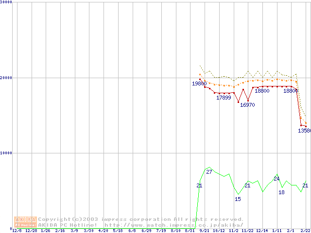 Athlon XP 2200+ (1.8GHz) リテールパッケージの価格推移