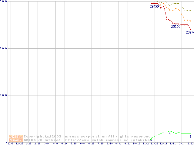 WD Caviar (7200rpm,UltraATA/100,2MB)の最安値推移