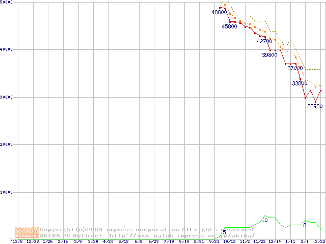 WD Caviar (7200rpm,UltraATA/100,2MB)の最安値推移