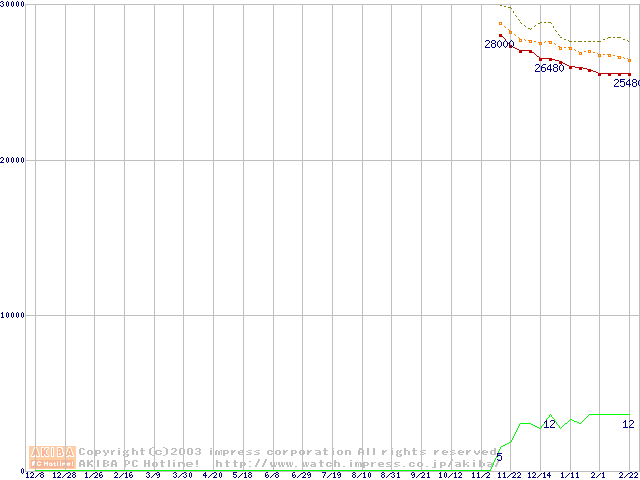 Socket A (OPGA,FSB 266MHz,L2 256KB,Thoroughbred)の最安値推移