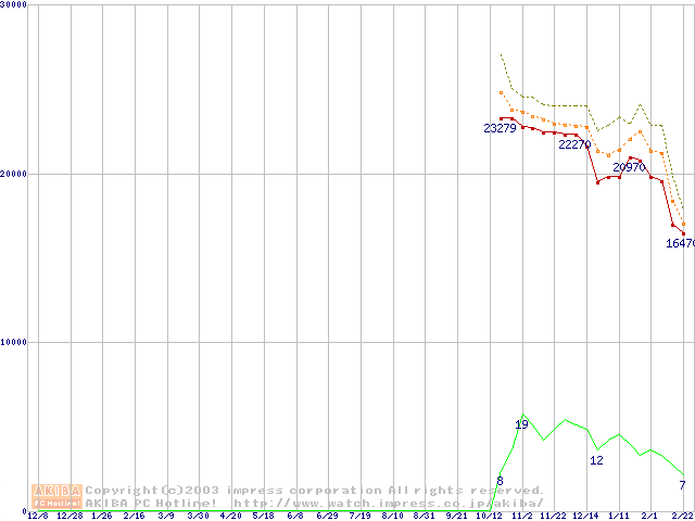 Socket A (OPGA,FSB 266MHz,L2 256KB,Thoroughbred)の最安値推移