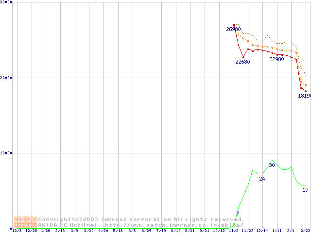 Socket A (OPGA,FSB 266MHz,L2 256KB,Thoroughbred)の最安値推移