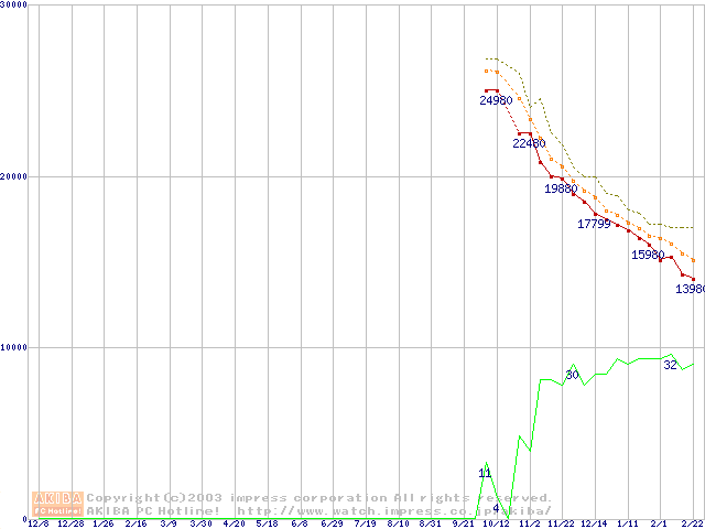 Deskstar 180GXP (7200rpm,2MB,UltraATA/100,FDB)の最安値推移