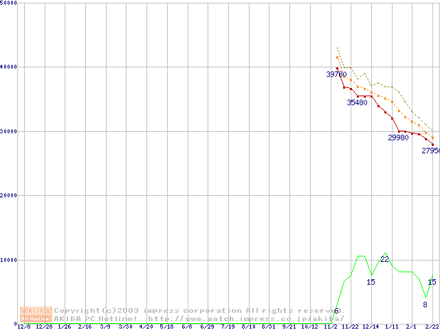 Socket A (OPGA,FSB 333MHz,L2 256KB,Thoroughbred)の最安値推移
