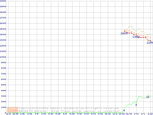 MHSシリーズ (9.5mm,4200rpm,UltraATA/100,2MB,FDB,30GB/Platter,FDB)の最安値推移