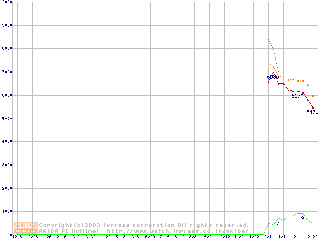 Socket 370 (PGA,FSB 100MHz,L2 64KB)の最安値推移