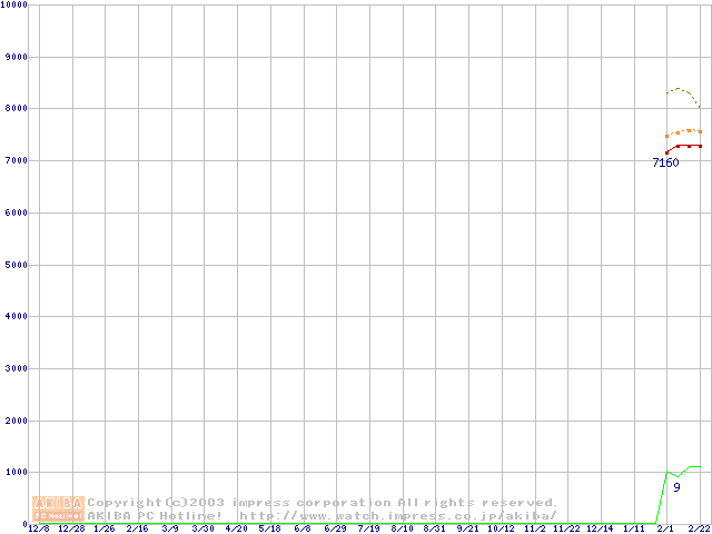 Socket A (OPGA,FSB 266MHz,L2 256KB,Thoroughbred)の最安値推移